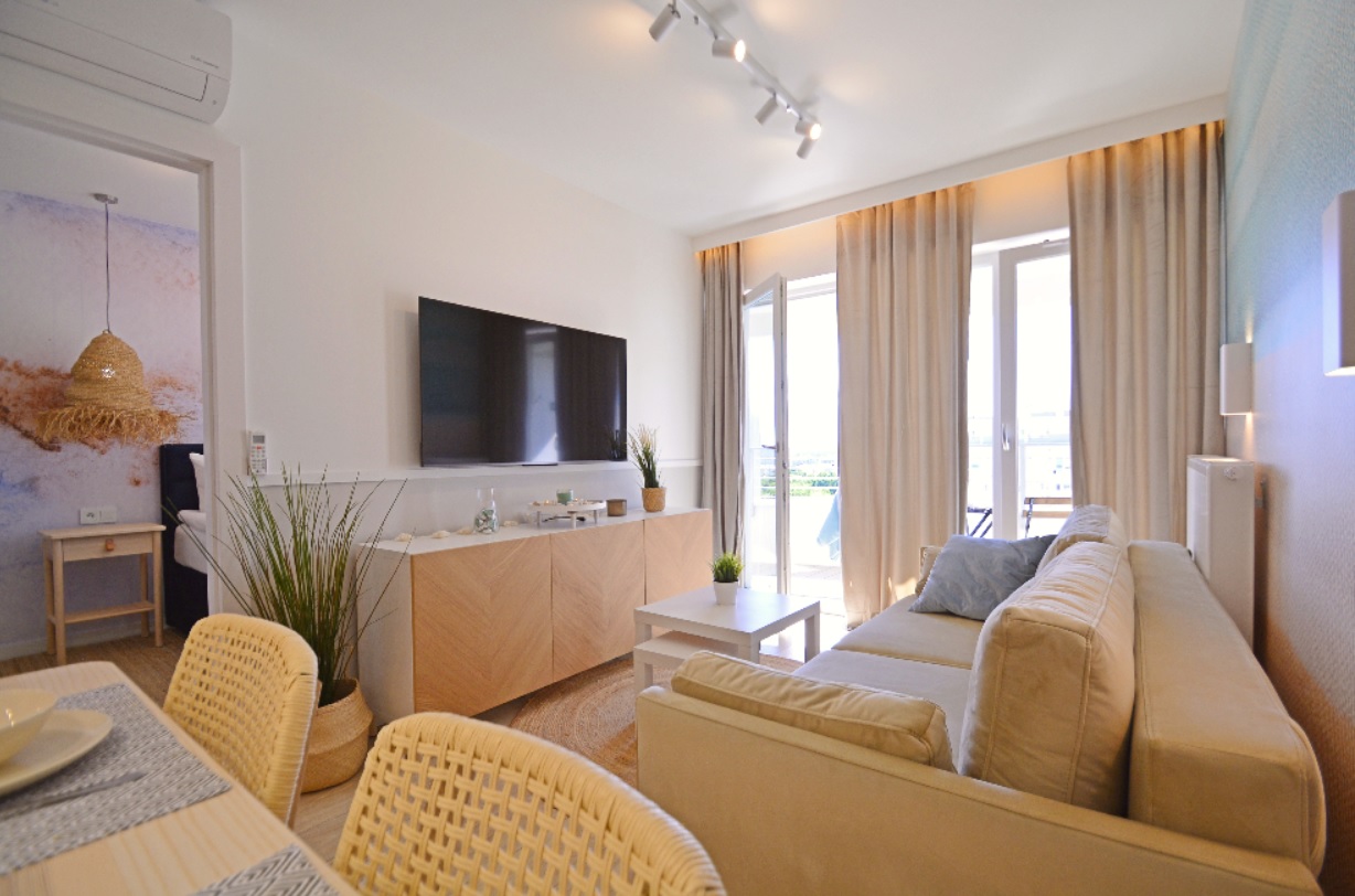 Im Umgebung befinden sich Läden (Lidl, Kaufland), Pizzeria und Caferestaurant. Die Wohnung ist ca. 8 Minuten mit dem Bus vom Strand erfernt. In der nähe befintet sich auch der Bahnhof. Mit dem Zug kann mann nach Alhbeck, Bansin und Herringsdorf fahren. In ca. 300 Meter vor der Wohnung befindet sich ein Markt, wo man viele interesante Sachen kaufen kann.